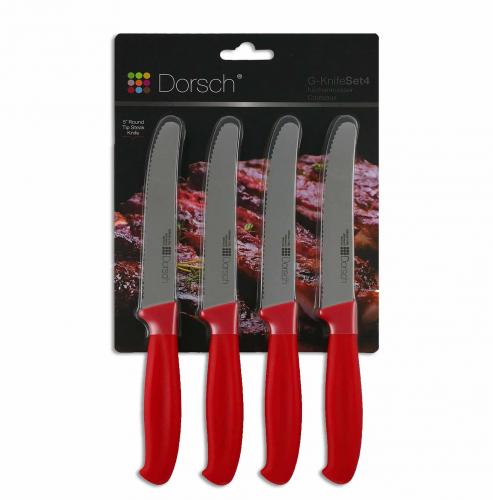 Steak Knivsættet fra Dorsch er et utroligt skarpt sæt fremstillet i rustfrit stål. Dorsch har udviklet de skarpeste knive der er fremstillet i speciel rustfrit stål og med anti-bakteriel belægning, som forhindrer indtryk af bakterier på maden, når det skæres.
